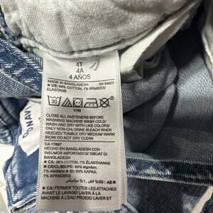 These Old Navy Kids Denim Bibs Overalls in Girls Size 4T are perfect for a casual and easy-to-wear outfit. The blue jean hearts jumper features a square neckline, adjustable straps, and a button closure. Made from a combination of spandex and cotton, these overalls are machine washable and suitable for all seasons. Ideal for everyday wear or special occasions like Valentine's Day, these bibs offer both comfort and style for little girls who love hearts and American-themed clothing.