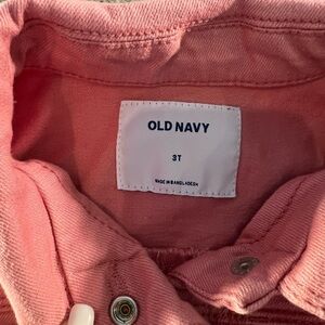 Chic rose-colored denim jacket. Features button front and chest pockets. Ideal for everyday wear.