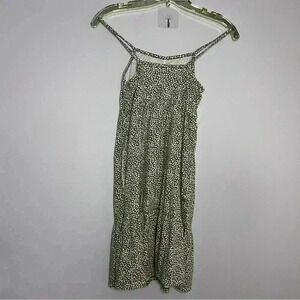 Old Navy Kids Sleeveless Summer Dress, Size 10/12 Grn&Wht Pattern Side Pockets