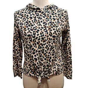 Old Navy Kids XL 14 16 Leopard Print Long Sleeve Hooded Tie Front Knit Top Cute