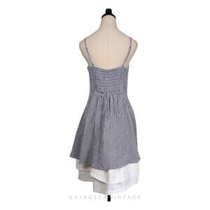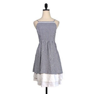 Old Navy Knee Midi Dress M Blue White Stripe Flare Beach Preppy Picnic Natutical