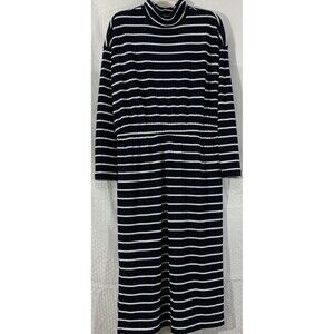 Old Navy Knit Lightweight Dress Navy White Womens M Long Sleeve Mock Neck