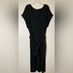 Basic black knit dress with tie belt. Polyester, rayon, spandex. Size Medium v neck dress from old navy
