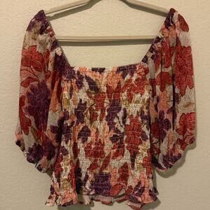 Old Navy L Floral Smocked Peasant Top Boho Square Neck Peasant Autumn Blouse NWT