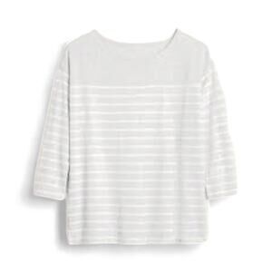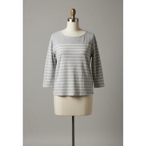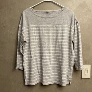 Old Navy L Gray White Striped 3/4 Sleeve Boat Neck T-Shirt Top