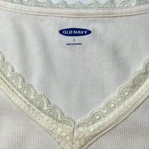 Old Navy Lace V-Neck Ribbed Long Sleeve Top NEW Sea Salt Womens Large