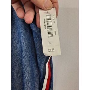 Old Navy Ladies Maternity Pixie Pants NWT. Medium Blue Denim, Size 16..  Elasticized panels on  each side, pullon with faux fly front and faux back pockets. Stripe down each side.  Measures 42" waist,  inseam is 26.5 ".  Retail $40