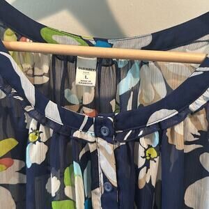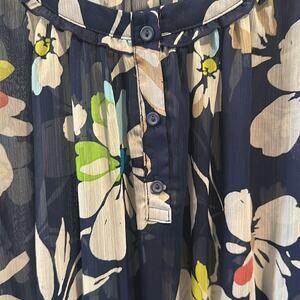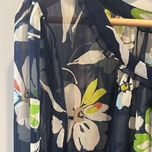 Old Navy Large Navy Blue Floral Semi-Sheer Cinched Blouse Top