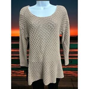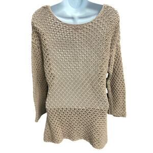 Old Navy Large Sweater Beige Cotton Open Weave Crochet Long Sleeve Vintage 2011