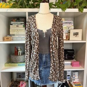 Old Navy Leopard Animal Print Lightweight Cardigan Sweater Tan Size Medium