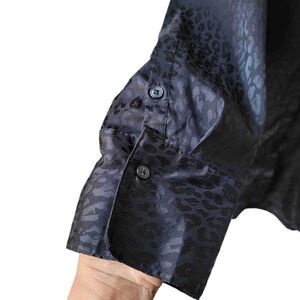 Old Navy Leopard Pattern Button Up Shirt Long Sleeve Collared Black Siz XXL Tall