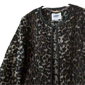 Old Navy Leopard Print Faux Fur Leather Trim Wool Blend Coat Jacket Size Small