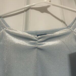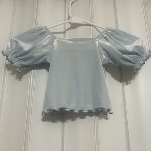 Brand new never used with tags, adorable, stretchy, light blue, soft velvet. Top has a little shine to it.