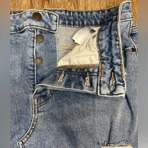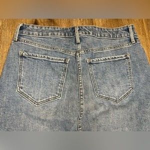 Good condition Old Navy denim skirt. Light blue wash with (intended) rips and a fringed bottom. Women’s size 10.