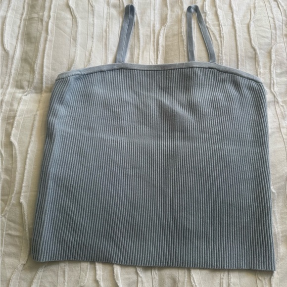 Light blue ribbed tank with adjustable straps. Ideal for casual wear.