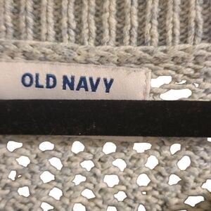 Stylish gray sweater with intricate knit pattern. Long sleeves. Comfortable and cozy.