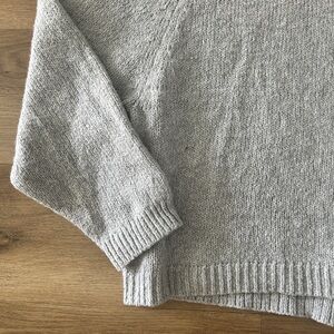 Cozy and classic Old Navy knit sweater in a light gray color. Features a soft mock neck, ribbed cuffs and hem, and a relaxed fit. Size Large. Made from a comfy blend of cotton, polyester, nylon, and spandex — with at least 35% recycled materials. Excellent used condition, perfect for layering or staying warm in style.