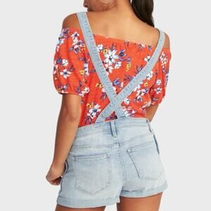 Old Navy Light Wash Denim Shortalls XXL Rolled Hem Distressed