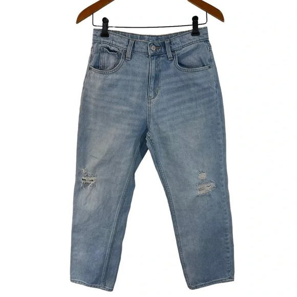Old Navy Light Wash Girls Jeans Size 14 High Rise Slouchy Straight Denim Bottom