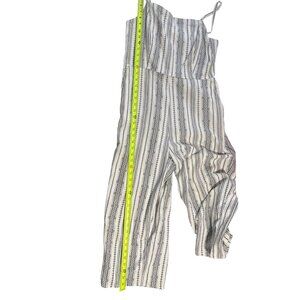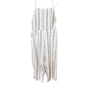 Old Navy Linen Blend Jumpsuit L Pockets Black & White Stripe Beachy Boho Resort