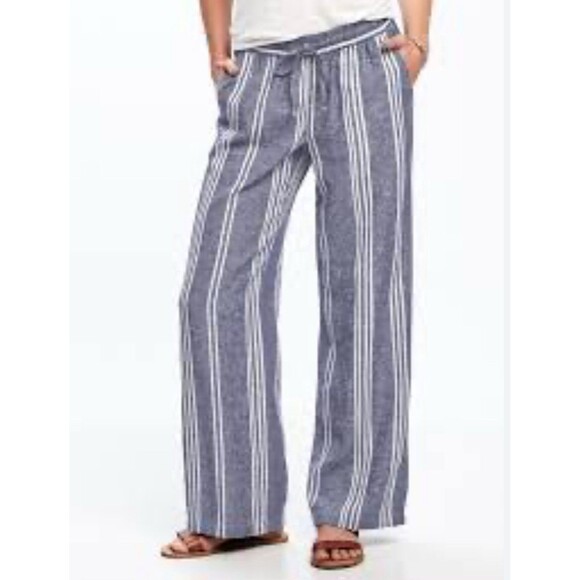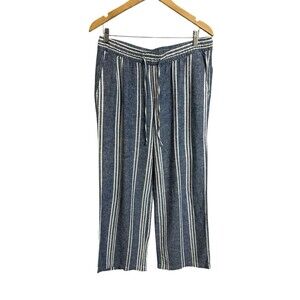 Old Navy Linen Blend Pants Women's M Blue & White Striped Beachy Wide Leg