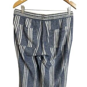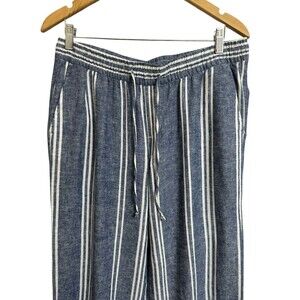 Old Navy Linen Blend Pants Women's M Blue & White Striped Beachy Wide Leg. In excellent like new condition. Feature elastic waist with drawstring closure, Front hand pockets and open back pockets. Material is 55% linen 45% rayon blend. Stored in a smoke-free environment.