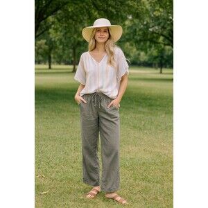 Old Navy Linen Blend Pants Womens S Green Pull On Wide Leg Flowy Lagenlook Beach