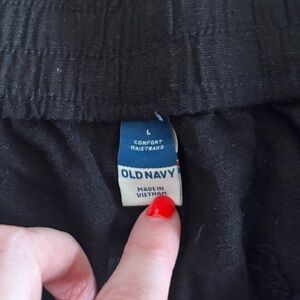 Old Navy Linen Blend Shorts Black Pockets Elastic L