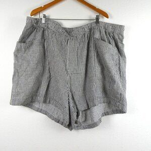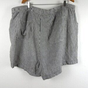 Old Navy Linen Blend Shorts Women's Plus Size 4X White Gray Stripe Elastic Waist