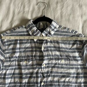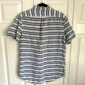Old Navy Linen Blend Striped Short Sleeve Button Up Mens Shirt Sz M Preppy Beach