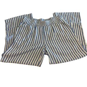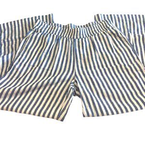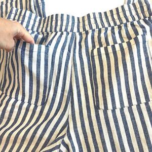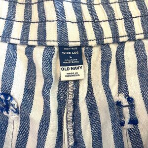 Old Navy Linen Blend Wide Leg Pull On Pants Sz L Navy Blue Striped Coastal Vacay