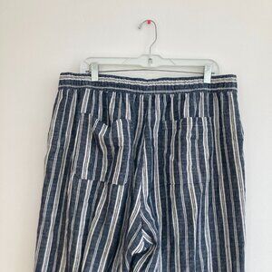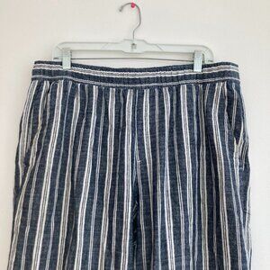 Old Navy Linen Blend Wide Leg Striped Pants Navy Blue Beach Vacation Large
