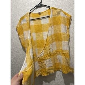 Old Navy Linen Blend Wrap Top Sz L Peplum Yellow Check Lightweight Gauze Beachy