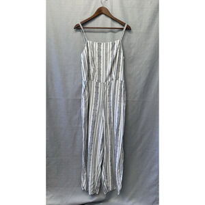 Old Navy Linen Cami Jumpsuit Womens Size L Tall White Stripe Smocked Beachy