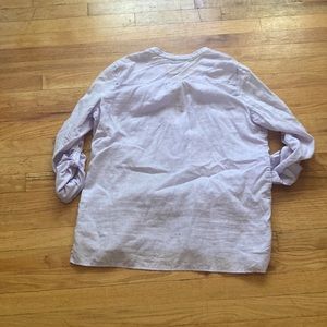 Band collar button down linen lilac, lavender, light purple old navy shirt with chest pockets.