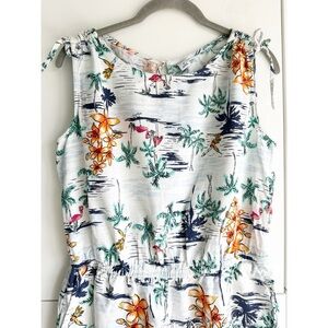 Old Navy Linen Romper Hawaiian Tropical Print Size Medium Palm Trees Flamingos