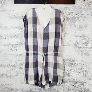 Old Navy Linen-Blend Plaid Sleeveless Romper Casual Summer One-Piece Coastal