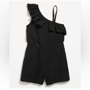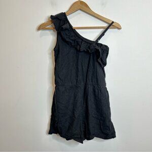 Old Navy Linen-Blend Ruffled One-Shoulder Romper Shorts Black