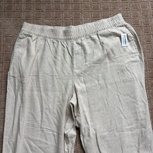 Old Navy Linen-Blend Wide Leg Pants Womens XXL Baggy Beige High-Waisted NWT