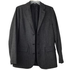 Old Navy Long Blazer Gray Recycled Wool Blend Single Breasted Pockets Size Small