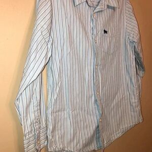 Boy's Old Navy long sleeve button down shirt, size large. Shirt is light blue, navy, and white striped. Thanks for looking!
