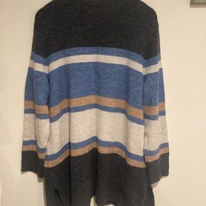 Old Navy Gray, Beige, Tan, and Blue Long Striped Open Front Cardigan Sweater, Duster