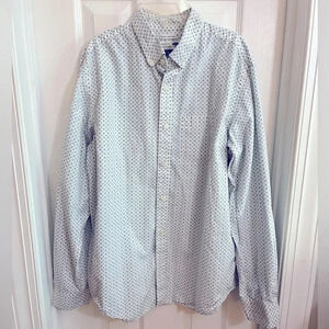 Gently used. Good condition, Regular fit, The Classic Shirt, button down collar, Casual, 100% cotton, the color is spring blue which looks like a very light blue tint/color, size Large, 1 pocket on chest left side