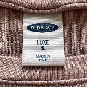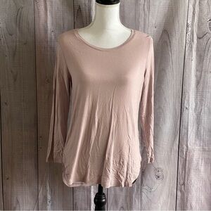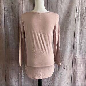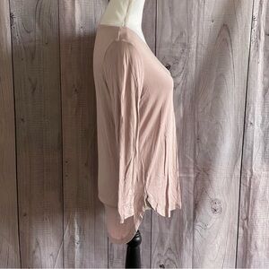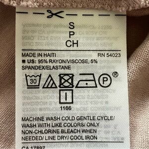 This top is in good condition with normal signs of wear. I have shown in the photos on both sides of the tops where it is coming unstitched on the side slits. They just need repaired and this top is good as new. I am not a seamstress or I would have repaired them. It is 95% rayon and 5% spandex. It is machine washable. This top is great for any casual outing or can even be worn at office.