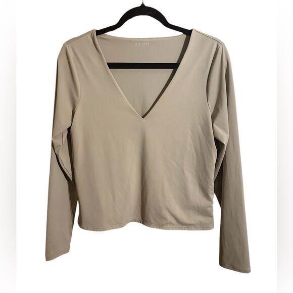 Old Navy Long Sleeve V-Neck Cropped Top Pullover Beige Layer Women's Size L