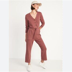 Old Navy Long-Sleeve Cropped French-Terry Utility Jumpsuit