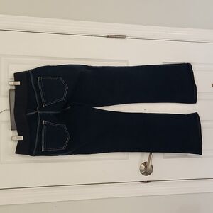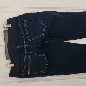 Keywords: maternity jeans, Old Navy maternity pants, low-rise bootcut, stretchy waistband, dark wash denim, pregnancy wear, cotton blend, comfortable maternity fashion, size 4 maternity.