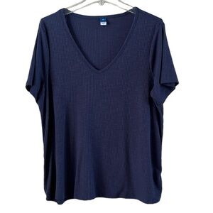 Old Navy Lux Top Ribbed V-neck Short Sleeves Size L Stretch Loose Fit