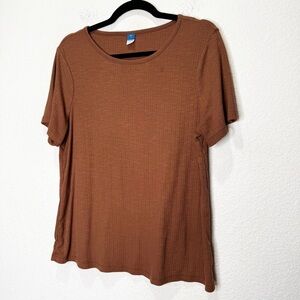 Old Navy Luxe Crew-Neck Rib-Knit T-Shirt Short Sleeve Date Palm