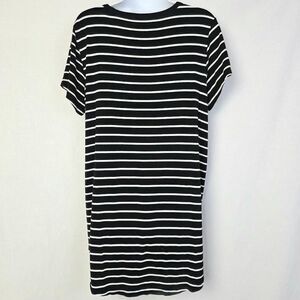 Old Navy Luxe tunic length tee in black with white horizontal stripes. Soft stretch fabric, short sleeves, scoop neck. Women’s size Large Tall.